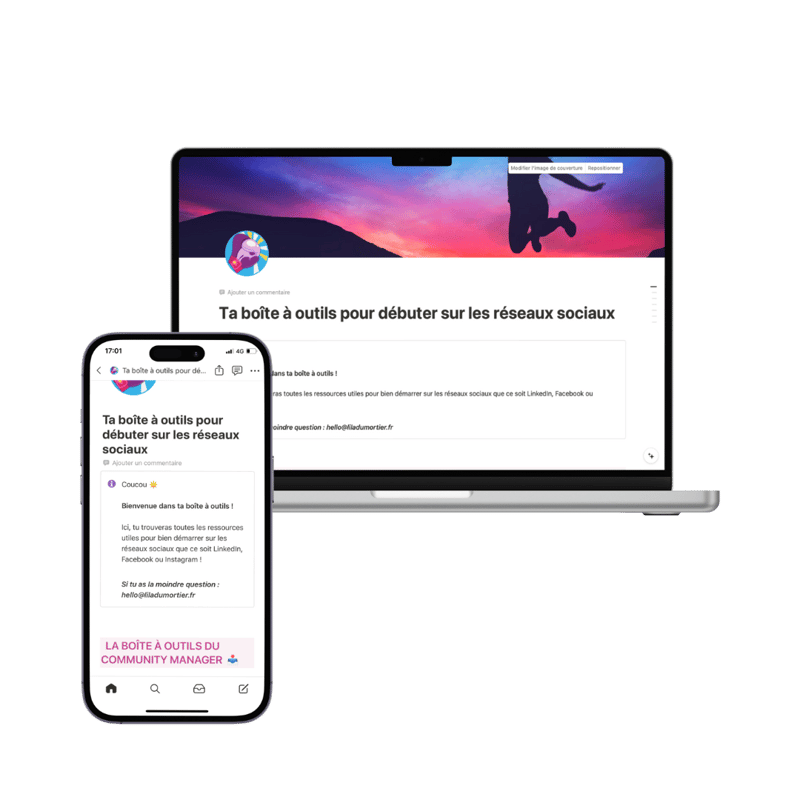 Dans cette boite à outils à dupliquer via Notion, retrouve + de 10 ressources gratuites et 100% actionnables pour booster ta présence sur les réseaux sociaux et (re)partir du bon pieds :